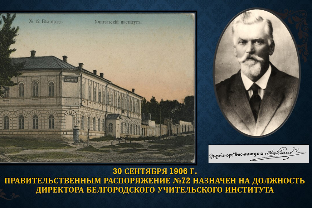 Подробно с биографией директора учительского института вы сможете ознакомиться на сайте музея истории НИУ «БелГУ».