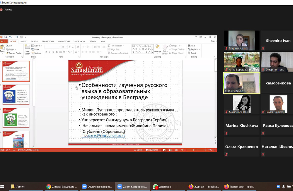 Зарубежные коллеги: Милош Пупавац, представляющий университет Сингидунум (г. Белград, Сербия), Марина Клочкова из Словакии, Маша Обрадович из Боснии и Герцеговины, - описали ситуацию с сохранением и распространением русского языка в образовательных учреждениях стран Европы.