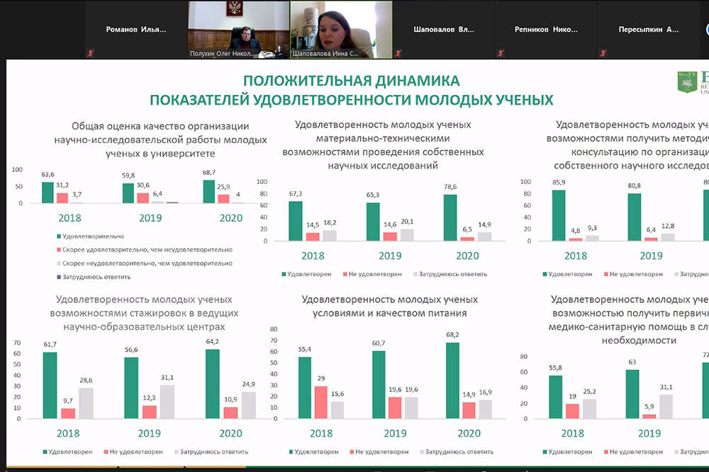 О результатах анализа системы менеджмента НИУ «БелГУ», проведённого руководством университета, и мониторинга удовлетворённости потребителей в сфере образовательных услуг, сообщили проректор по качеству и дополнительному образованию Владимир Шаповалов и директор международного центра социологических исследований Инна Шаповалова. Было отмечено, что система менеджмента качества вуза результативна и развивается с положительной динамикой. На основании проведённого мониторинга на учёном совете было принято решение разработать и утвердить на ученых советах образовательных структурных подразделений дорожные карты по повышению удовлетворённости потребителей образовательными услугами.