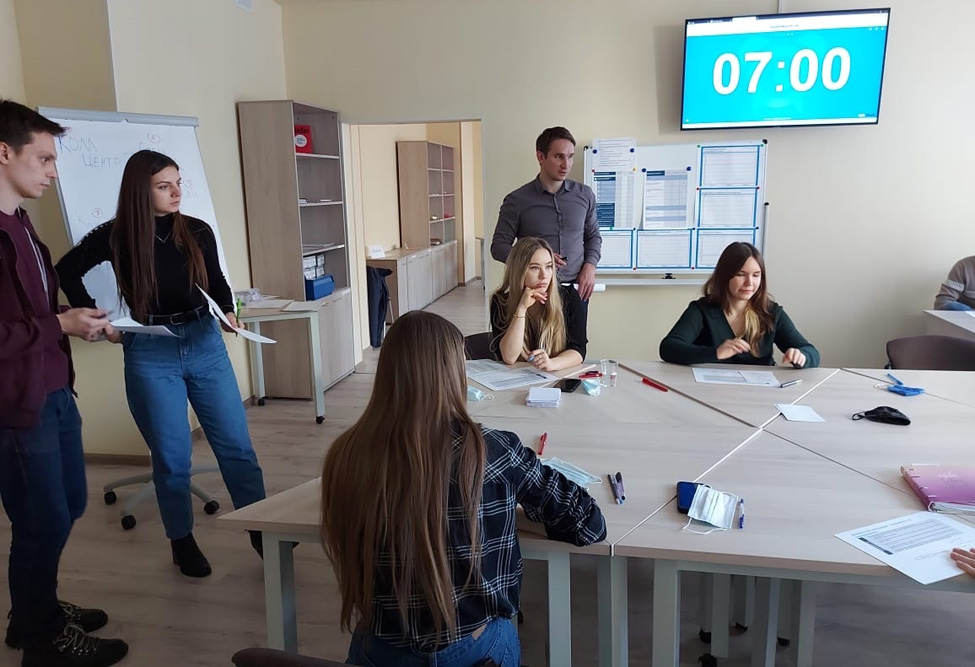 Учебно-тренировочные сессии для обучающихся провели заведующая кафедрой бережливого производства Ирина Чистникова, коммерческий директор ОАО «Белвино» Сергей Рожков и менеджеры Высшей школы управления Ольга Доль и Екатерина Епифанова.