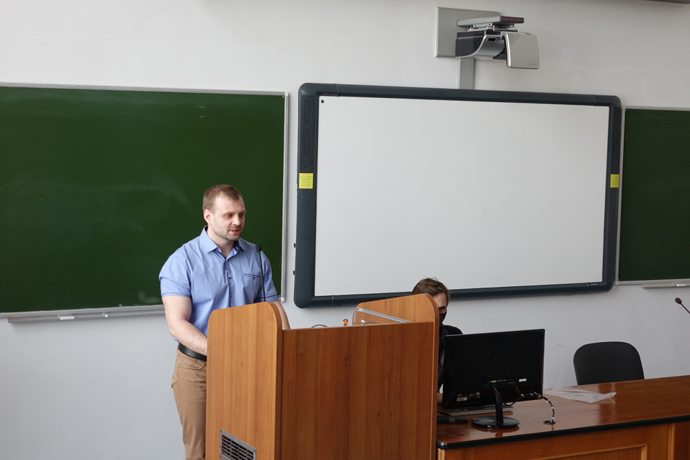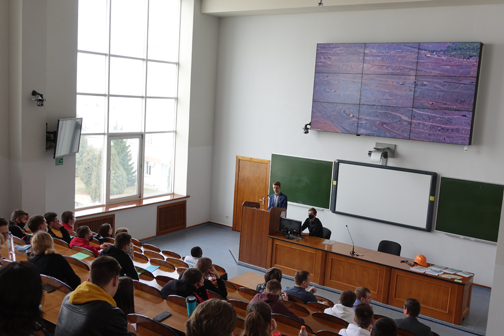 Выпускник геолого-географического факультета, младший научный сотрудник отдела геологии и геоинформатики ОАО «ВИОГЕМ» Иван Агарков рассказал присутствующим о специфике работы предприятия и ответил на вопросы гостей.