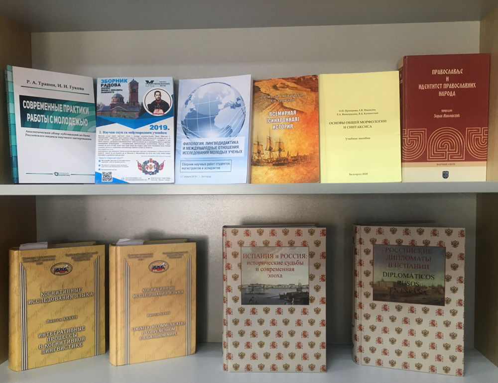 В рамках Недели науки в институте межкультурной коммуникации и международных отношений НИУ «БелГУ» проходит выставка научных трудов, учебных пособий преподавателей, сборников докладов конференций и научных публикаций