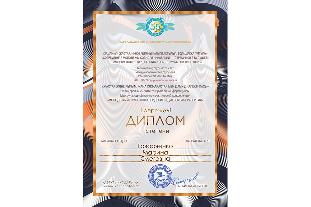 В Карагандинском университете Казпотребсоюза (Казахстан) Студенческий слёт «Современная молодёжь: созидая инновации – стремимся в будущее» завершился VI международный слёт студентов «Современная молодёжь: созидая инновации – стремимся в будущее», собравший представителей вузов Казахстана, России и Беларуси. В рамках слёта состоялись международная научно-практическая конференция «Молодёжь и наука: новое видение и диалектика развития», конкурс инновационных проектов «Инновационные проекты: взгляд в будущее» и международный конкурс научных проектов «Научный потенциал-XXI».
