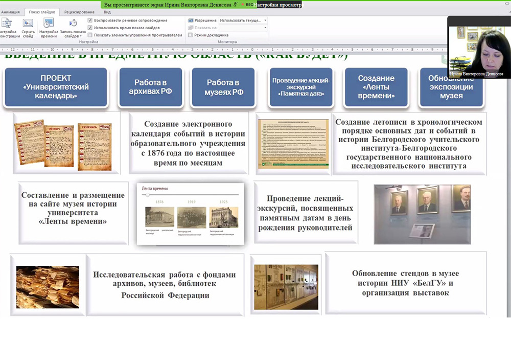 Старт проекту «Университетский календарь» дан в год 145-летия со дня создания вуза. Об этапах и нюансах работы рассказала директор музея истории НИУ «БелГУ» Ирина Денисова.