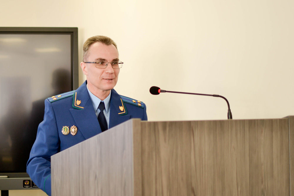 Старший помощник прокурора Белгородской области, старший советник юстиции Эдуард Кремнев передал руководству юридического института поздравительный адрес от прокурора Белгородской области. По словам Эдуарда Анатольевича, около 150 оперативных сотрудников областной прокуратуры – это выпускники юридического института, и важным фактором при принятии на службу является опыт, приобретённый в юридической клинике, где будущие специалисты обучаются не только основам юриспруденции, но и общению с клиентами.
