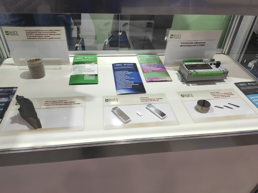 В этом году в экспозиции университета представлены девять высокотехнологичных проектов, реализуемых в том числе в рамках НОЦ «Инновационные решения в АПК» на базе института фармации, химии и биологии, медицинского института, института инженерных и цифровых технологий, технопарка «Высокие технологии» НИУ «БелГУ», НИИ материаловедения и инновационных технологий, НИЛ технологических систем, НИЛ интеллектуальных автоматизированных систем управления.