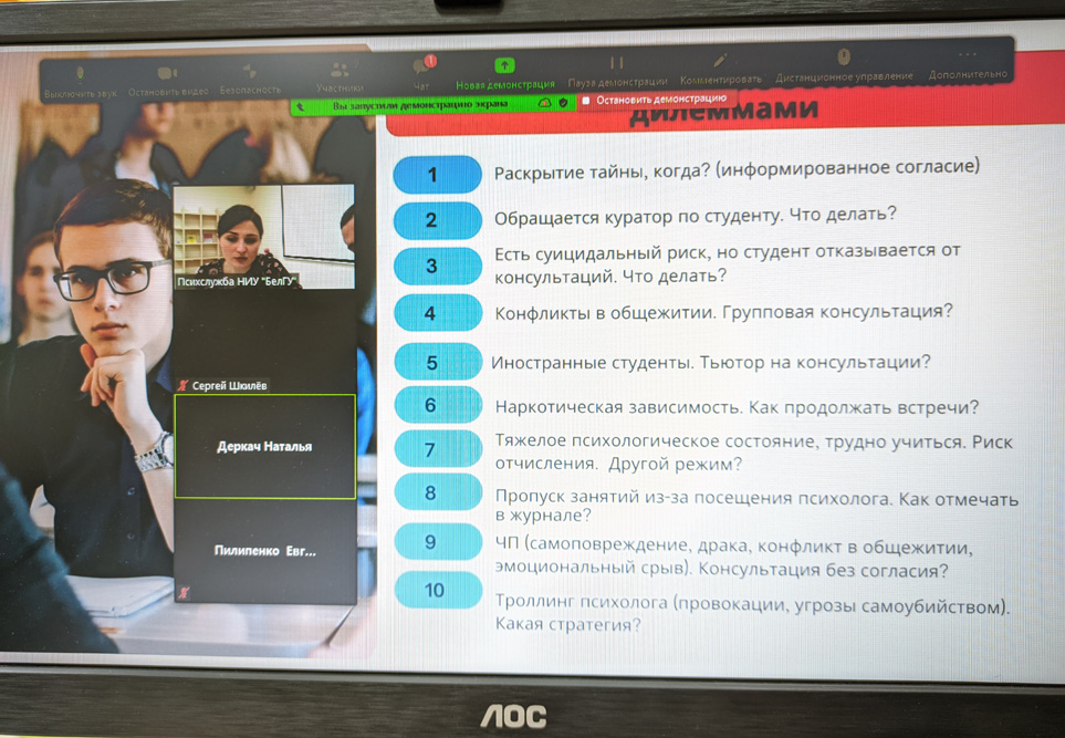 Опытом краткосрочного психологического консультирования студентов, преподавателей и сотрудников вуза поделился руководитель Психологической службы НИУ «БелГУ» Дмитрий Сазонов.