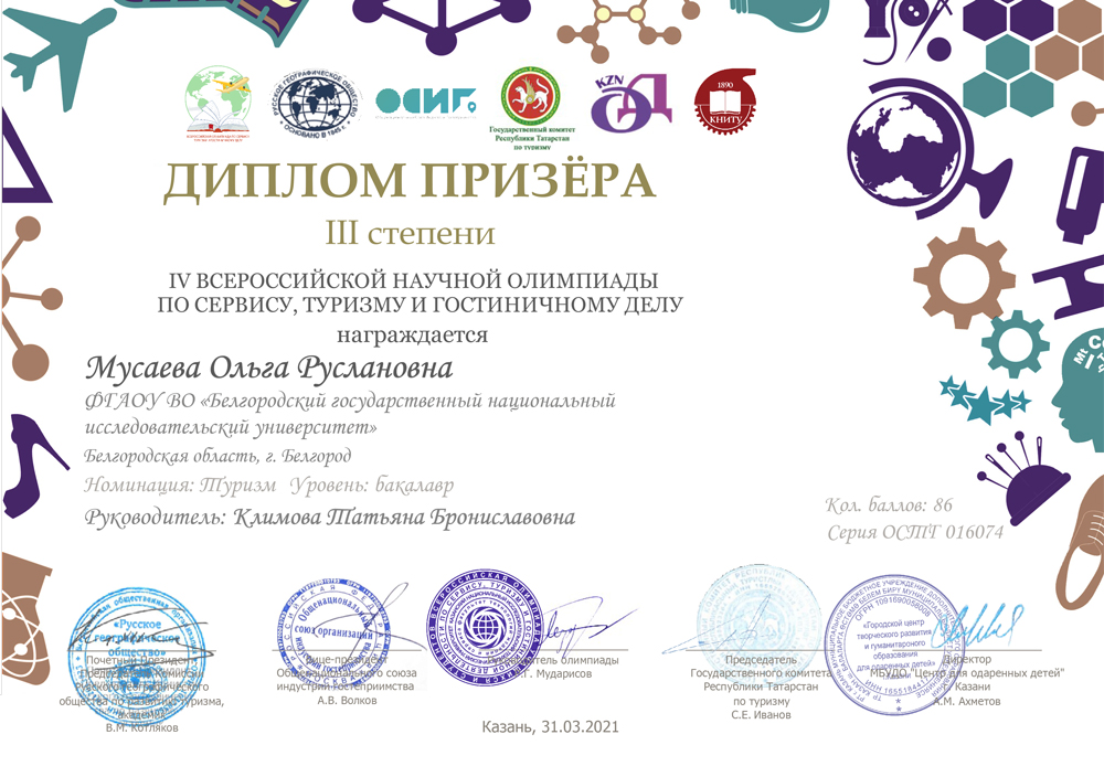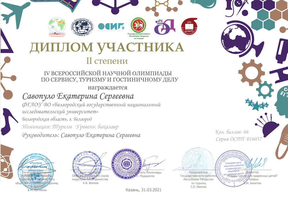 Подведены итоги IV всероссийской олимпиады с международным участием по сервису, туризму и гостиничной деятельности, соорганизатором которой выступила кафедра международного туризма и гостиничного бизнеса института экономики и управления НИУ «БелГУ»