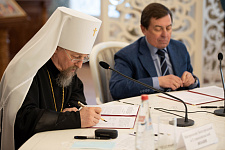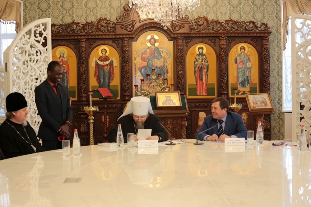 Символичным итогом сегодняшней встречи стало подписание двустороннего договора о продолжении сотрудничества НИУ «БелГУ» и Белгородской Митрополии в сфере образовательной, научной, социально-воспитательной и культурно-просветительской деятельности.