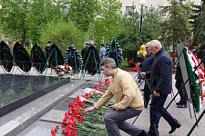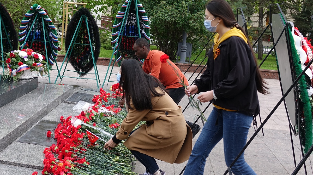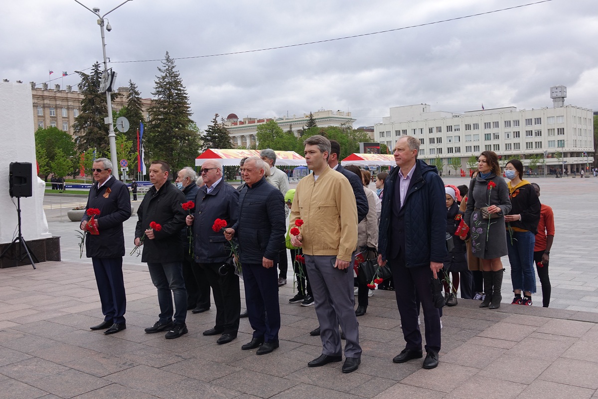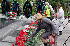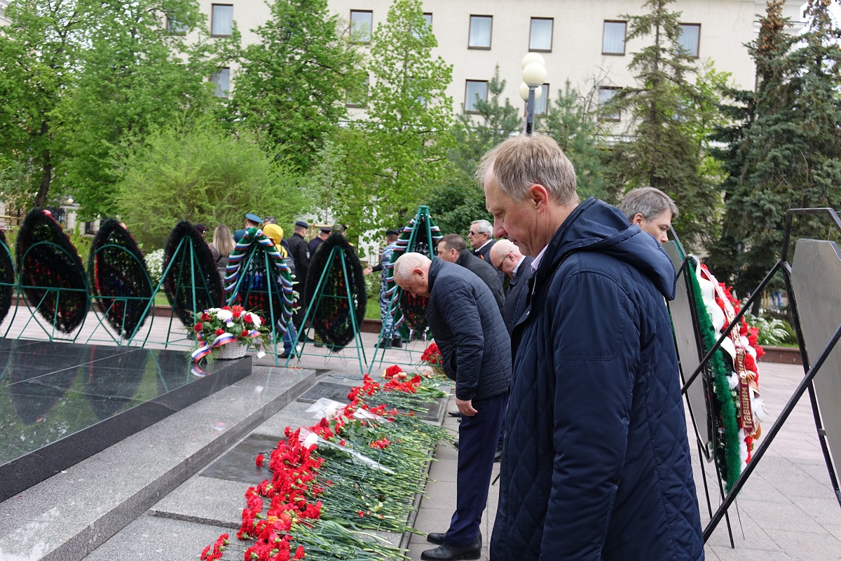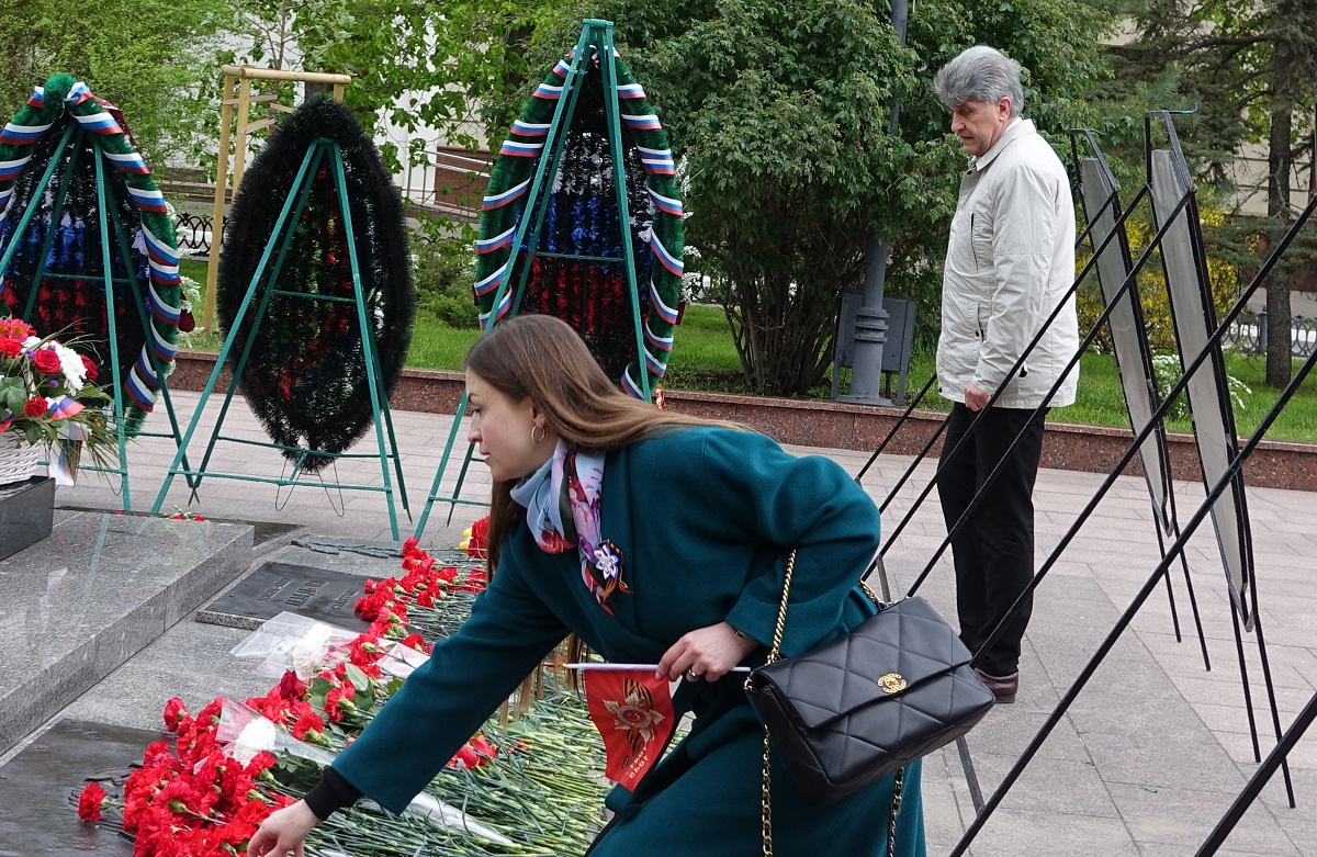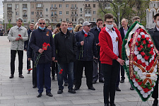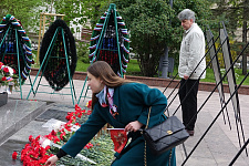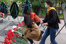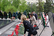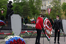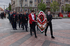 В день 76-й годовщины Великой Победы представители НИУ «БелГУ» возложили венок и цветы к памятнику "Скорбящая мать" на Соборной площади