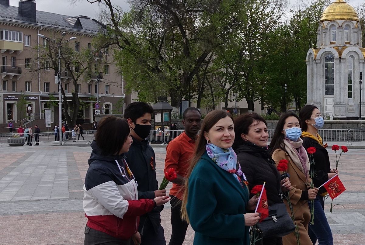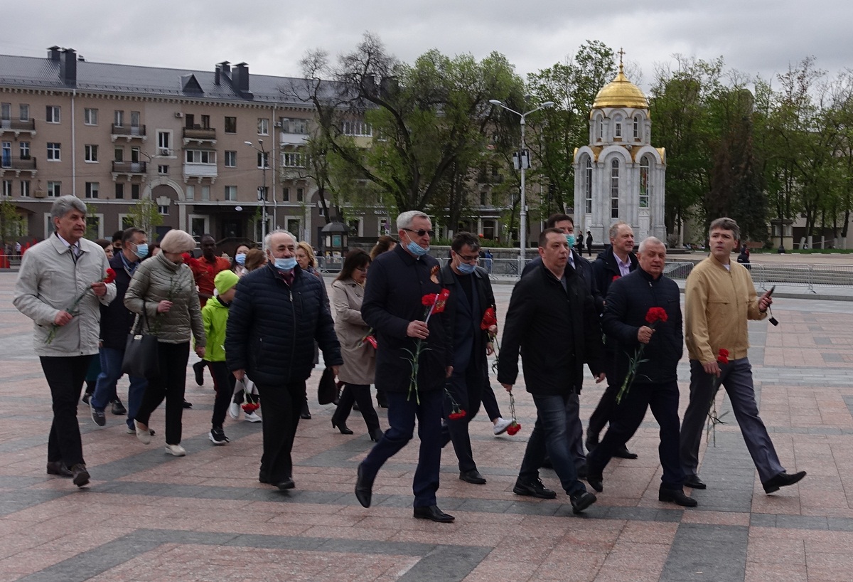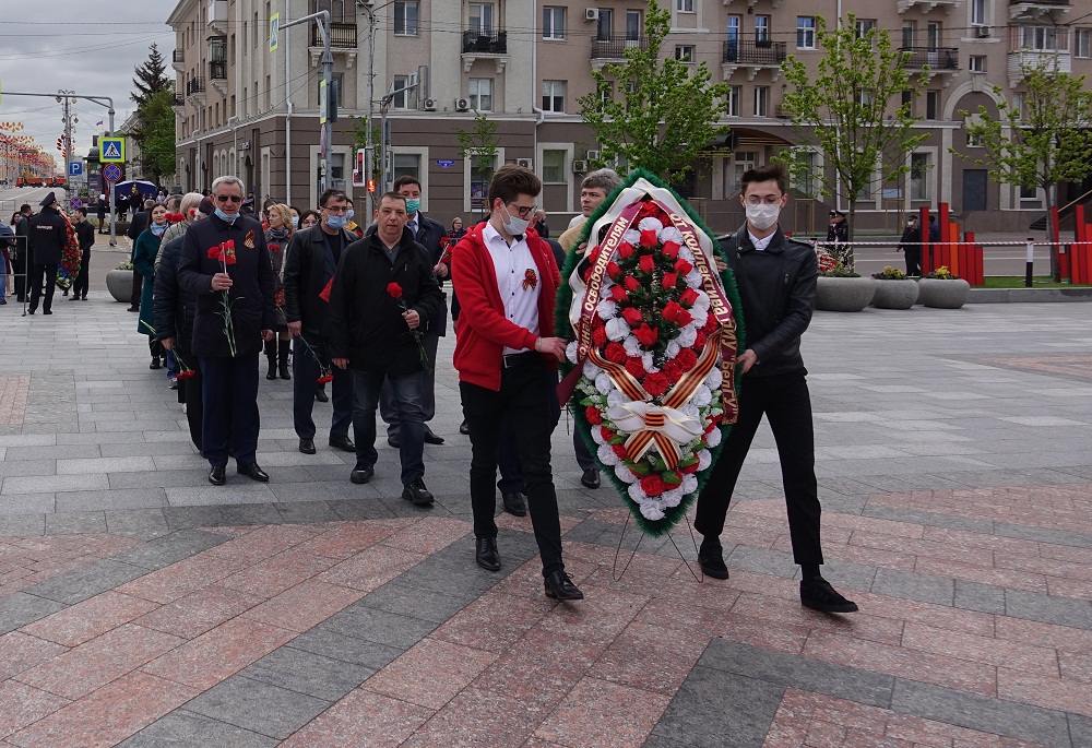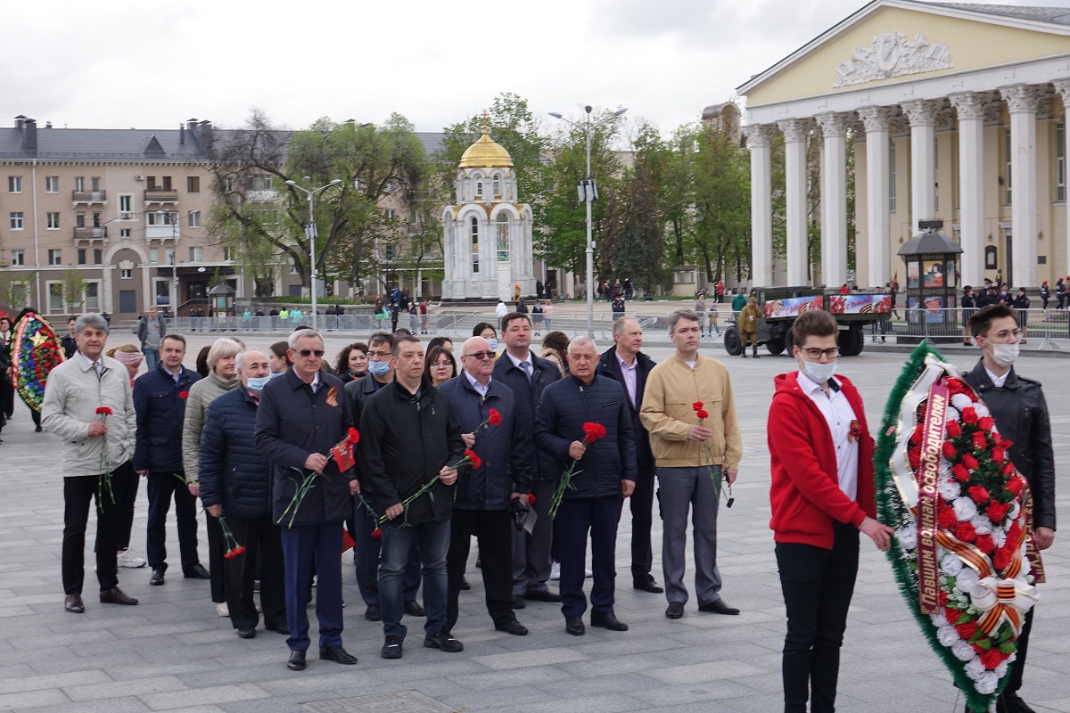 Традиционно, в День Победы 9 мая, представители всех организаций и предприятий города приходят на Соборную площадь к мемориальному комплексу с Вечным огнём и памятником скорбящей Матери, чтобы почтить память всех ветеранов войны. Представители ректората, профкома, институтов и факультетов НИУ «БелГУ» также ежегодно участвуют в этом шествии памяти. Сегодня члены коллектива вуза возложили венок и цветы к памятнику и почтили минутой молчания память погибших в годы Великой Отечественной войны защитников Родины.