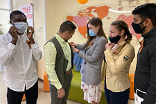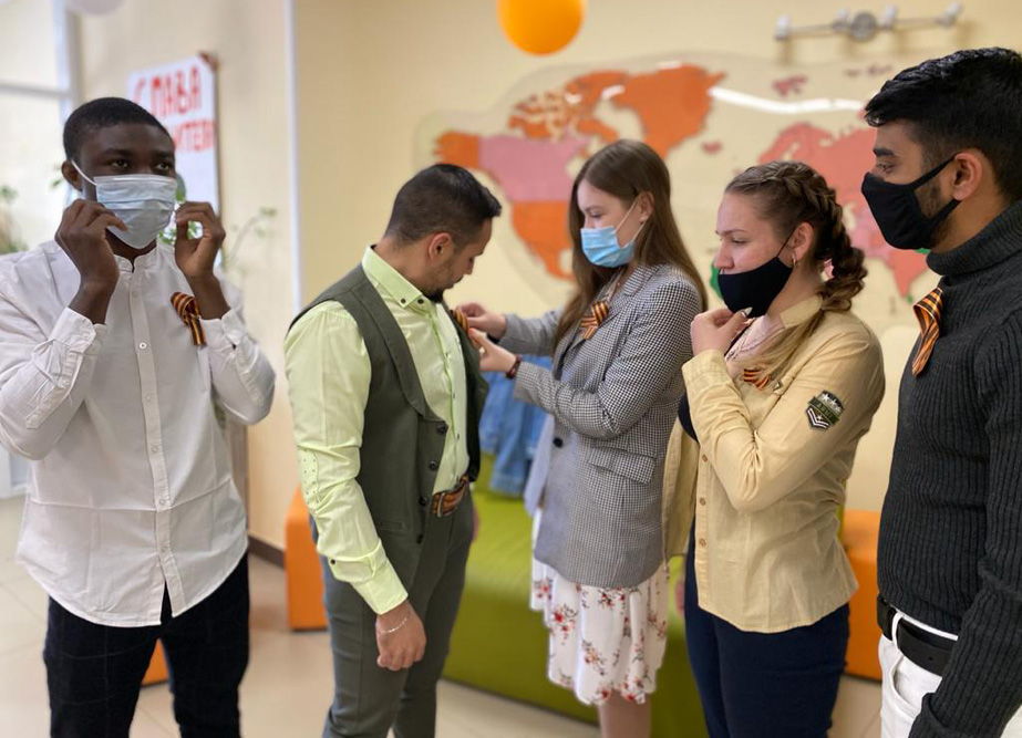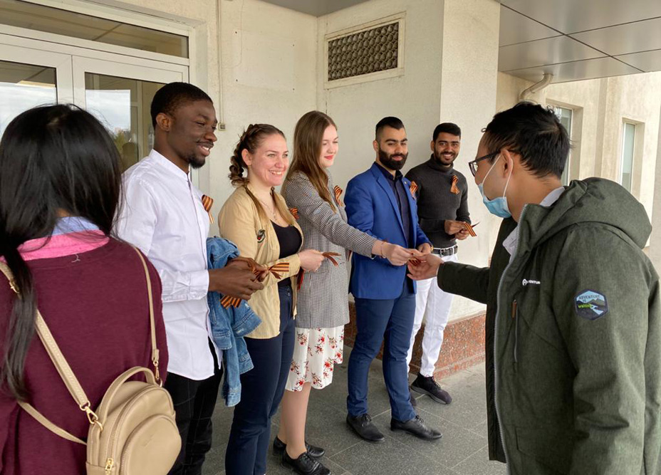 В день Великой Победы активисты Центра гражданско-патриотического воспитания обучающихся совместно со студенческим советом общежития № 4 вручили жителям студенческого городка и горожанам символ Великой Победы – Георгиевские ленточки.