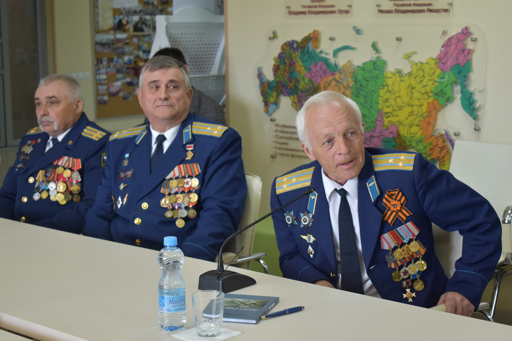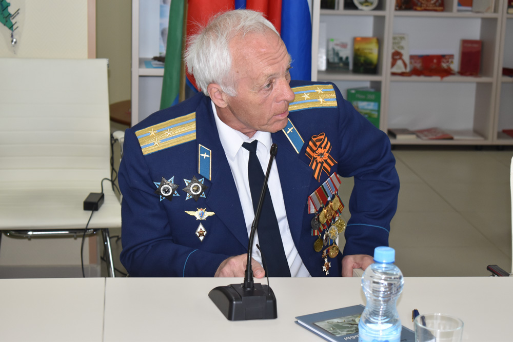 О событиях Великой Отечественной рассказали гости симпозиума — полковник Виктор Кондратьев, начальник политотдела НИИ Авиационной и Космической медицины, кавалер двух орденов «За службу Родине» 2-ой и 3-ей степеней, подполковник Анатолий Доценко, заместитель командира вертолётного полка, кавалер двух орденов «Красная Звезда», ордена «За мужество», командир истребительного авиационного полка, лётчик первого класса, кавалер ордена «Красная Звезда», медали «За Боевые Заслуги» полковник Владимир Баштовой, командир истребительного авиационного полка, лётчик первого класса, кавалер ордена «Красная Звезда» полковник Владимир Черенков и активист ветеранского движения, капитан запаса ВДВ Валерия Голоус.