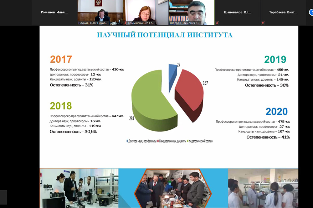 Заведующая кафедрой обратила внимание на реализуемые проекты с вузами-партнёрами, в том числе и зарубежными — Каршинским государственным университетом (Узбекистан) и Белорусским государственным педагогическим университетом им. М. Танка — в части совместных научных исследований, издательской и публикационной деятельности, а также обмена передовыми образовательными практиками.