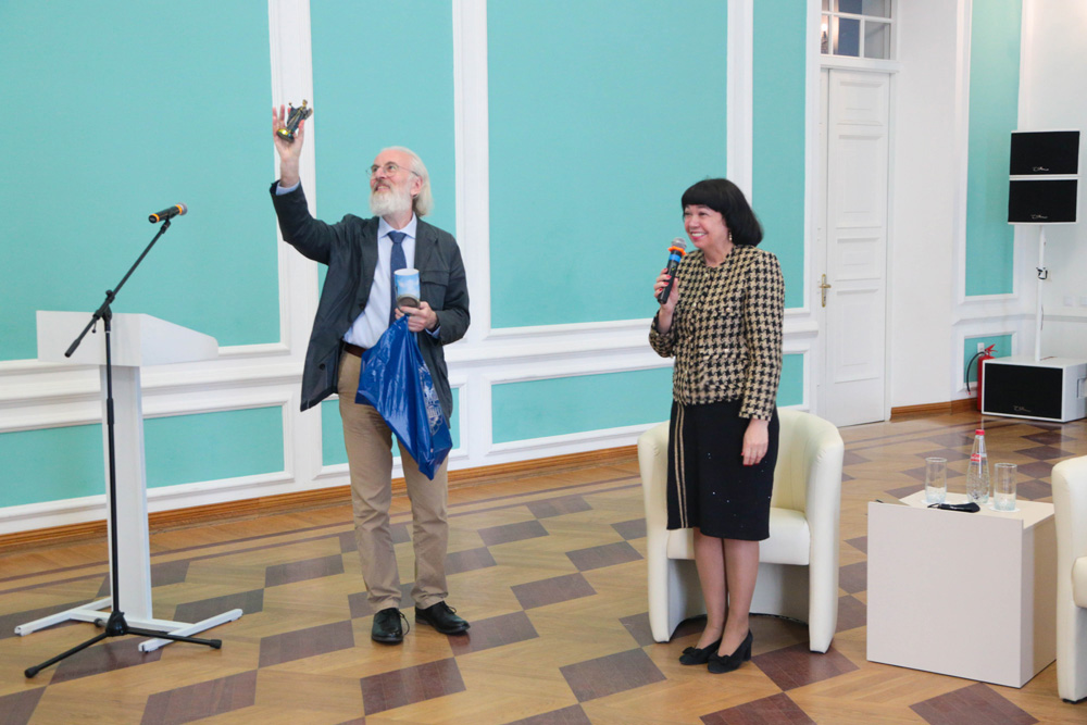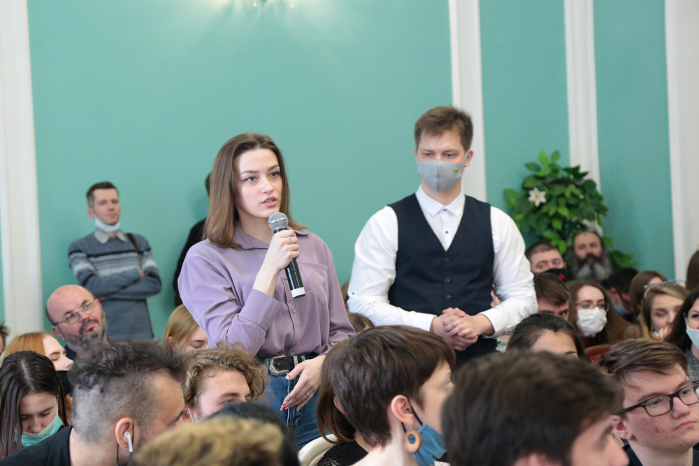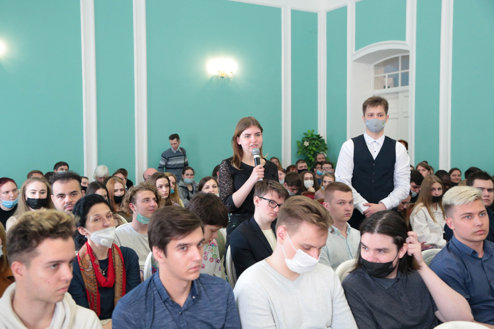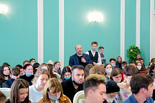 В завершение встречи студенты поблагодарили Александра Леонидовича за визит и задали интересующие их вопросы. Организаторы вручили гостю памятные подарки, один из которых – статуэтка святого покровителя университета архангела Гавриила.