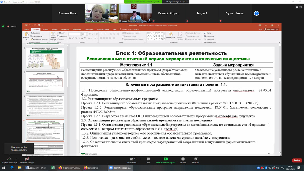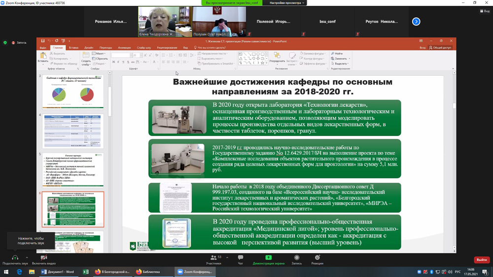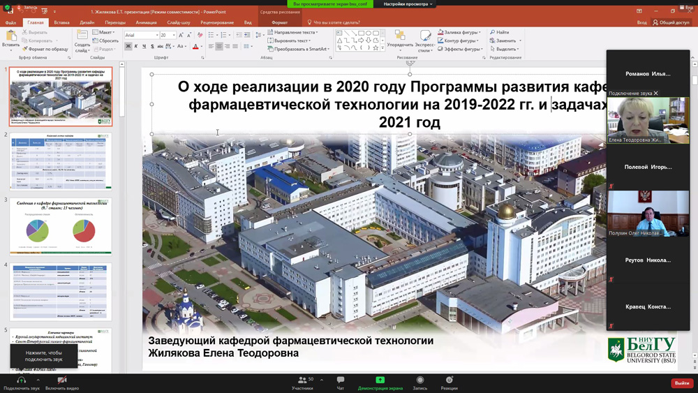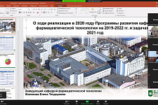 Об итогах реализации в 2020 году Программы развития кафедры фармацевтической технологии медицинского института на 2019-2022 гг. и задачах на 2021 год рассказала заведующая кафедрой Елена Жилякова. Она отметила, что по итогам профессионально-общественной аккредитации кафедра получила высшую оценку, в том числе за развитие научной базы.