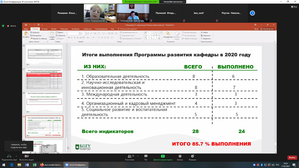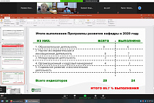 Заслушав и обсудив доклад, Совет по реализации программ стратегического развития и имущественному комплексу университета признал результаты выполнения в 2020 году Программы развития кафедры удовлетворительными и утвердил её актуализированный вариант на период до 2022 года.
