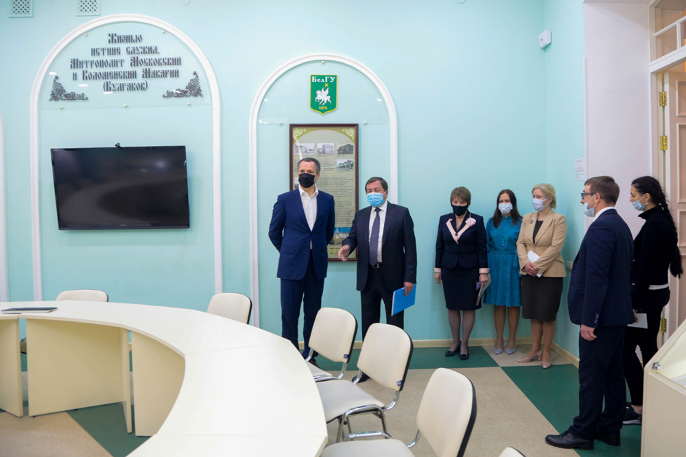 На площадке института общественных наук и массовых коммуникаций НИУ «БелГУ» состоялась встреча врио губернатора Белгородской области Вячеслава Гладкова со студенческим активом университета. Перед началом встречи, которая прошла в формате «Диалог на равных», ректор НИУ «БелГУ», профессор Олег Полухин провёл экскурсию по старейшему кампусу университета, представив воссозданную в здании пять лет назад часовню во имя преподобномученицы Евгении Римской, открытую к юбилею уроженца Белгорода Николая Страхова библиотеку-музей известного русского мыслителя, а также Духовно-просветительский центр им. митрополита Макария (Булгакова), на базе которого в сотрудничестве с Белгородской митрополией ведётся большая воспитательная работа.