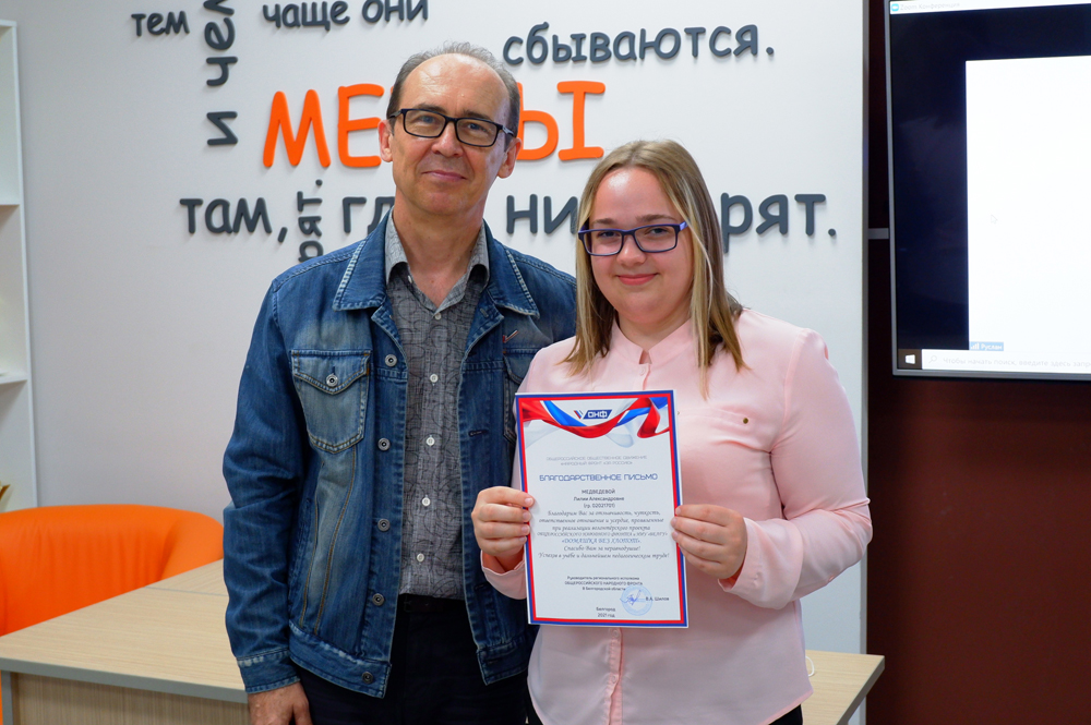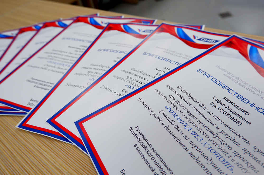 Активисты регионального отделения ОНФ – кураторы проекта «Домашка без забот» – вручили благодарности 20 студентам пединститута НИУ «БелГУ» за поддержку семей медиков, работающих в ковидных центрах