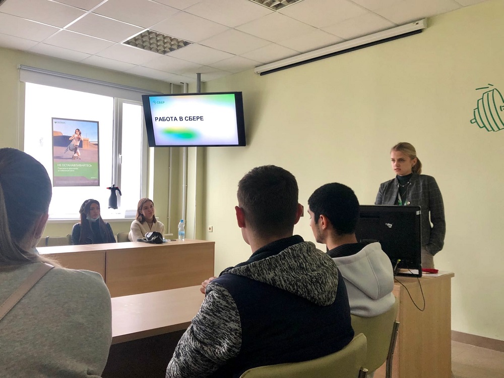 Сотрудники ПАО «Сбербанк» рассказали выпускникам групп 09001712, 09001713 о текущей ситуации на рынке труда и о перспективах трудоустройства в рамках компаний, входящих в экосистему «Сбер».