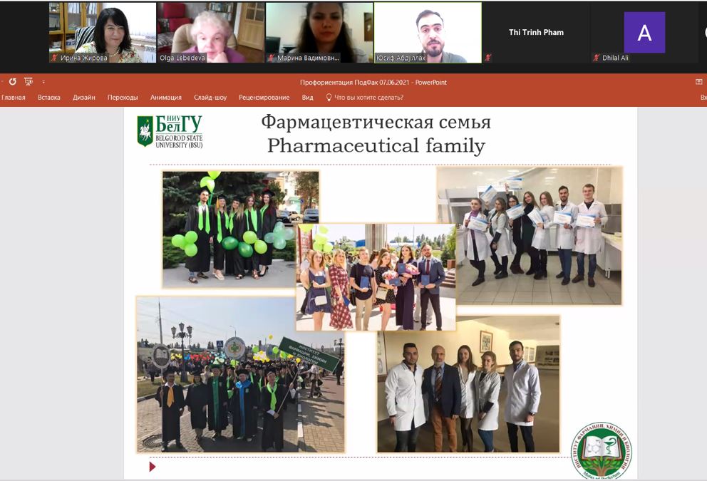 Иностранные гости увидели видеосюжеты о Белгородском госуниверситете, ИФХиБ, факультетах института, и, воспользовавшись возможностью, смогли задать интересующие вопросы на своих родных языках. Это помогло будущим абитуриентам сформировать представление о выбранных профессиях и возможностях их освоения в институте фармации, химии и биологии НИУ «БелГУ».