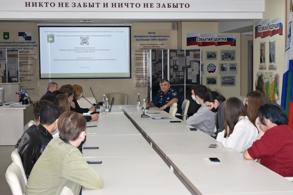 В Центре гражданско-патриотического воспитания обучающихся НИУ «БелГУ» прошло очередное заседание университетского Клуба молодых политологов на тему: «Проблемы формирования политического мировоззрения у современной молодёжи»