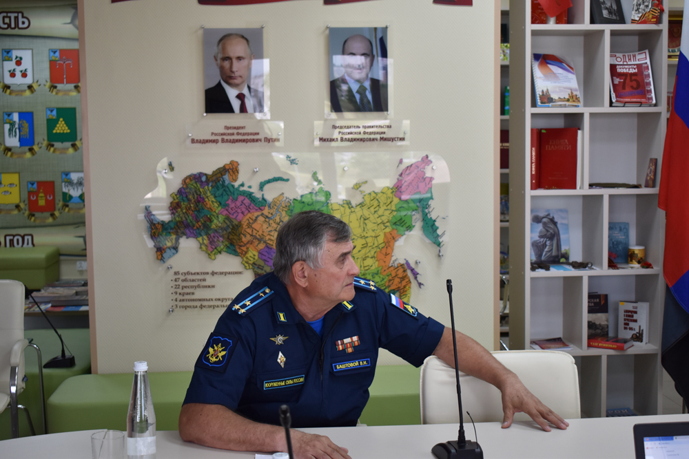 Своей гражданской позицией поделились с обучающимися университета почётные гости мероприятия – председатель ВПАК «Крылья Родины», полковник Владимир Баштовой и командир истребительного авиационного полка, лётчик первого класса, кавалер ордена «Красная Звезда», полковник Владимир Черенков.