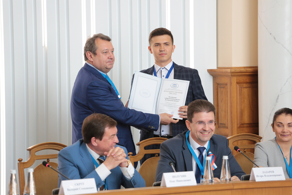 Игорь Лазарев также зачитал приветственный адрес от врио губернатора Белгородской области Вячеслава Гладкова. В нём Вячеслав Владимирович отметил, что уже с юных лет молодёжь занимает активную гражданскую позицию, вносит свежие идеи в развитие государства.