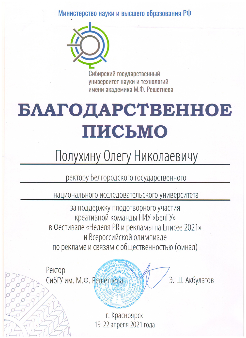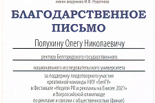 Студенты НИУ «БелГУ» – в числе победителей XIX всероссийского фестиваля «Неделя PR и рекламы на Енисее 2021»