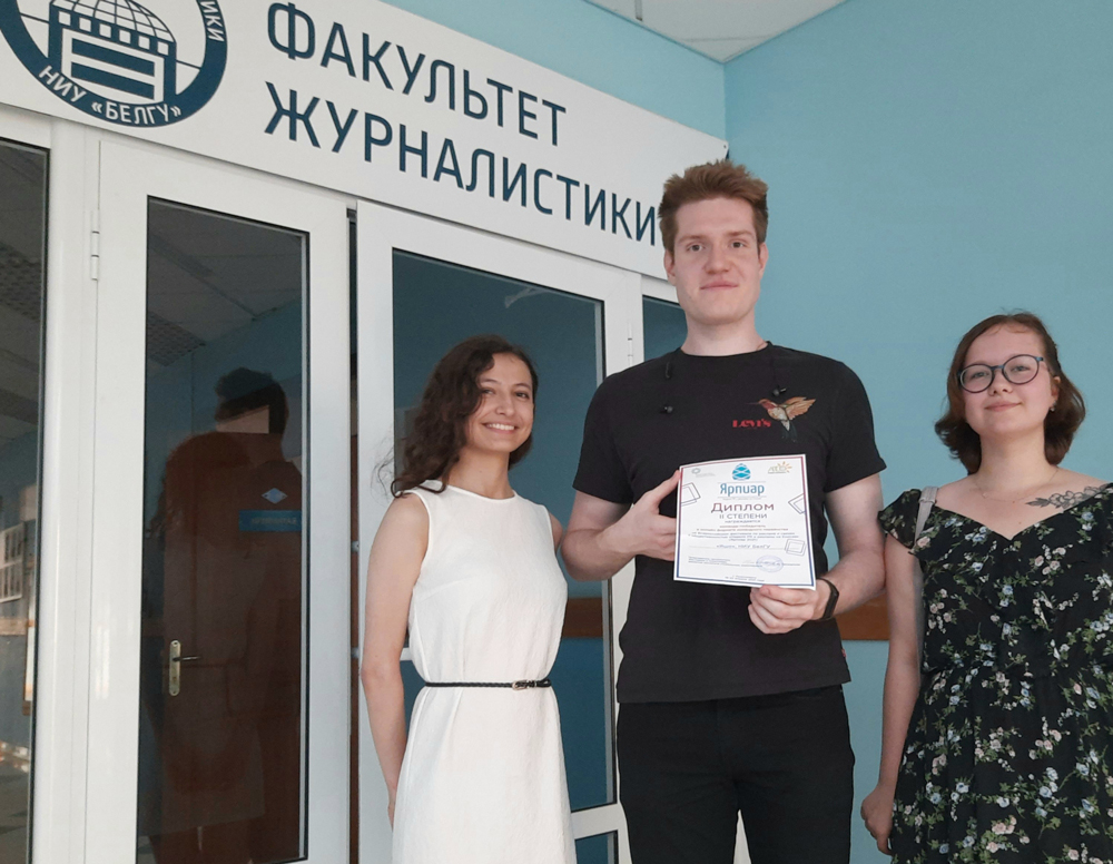 НИУ «БелГу» представила команда «Яшо», в состав которой вошли активисты студенческого рекламного агентства «Мята», студенты третьего курса факультета журналистики института общественных наук и массовых коммуникаций Светлана Мулява, Дарья Ходырева и Алексей Василенко. Соревновательный путь завершился заслуженным 2 местом в общекомандном зачёте, среди команд со всей России, принявших участие в заочном формате.