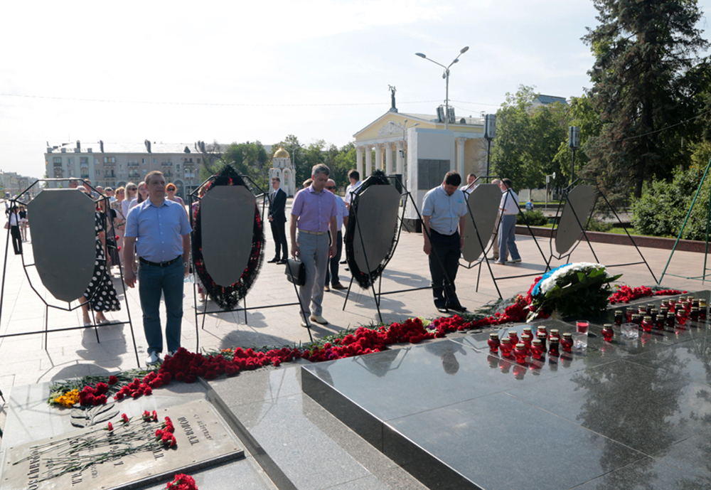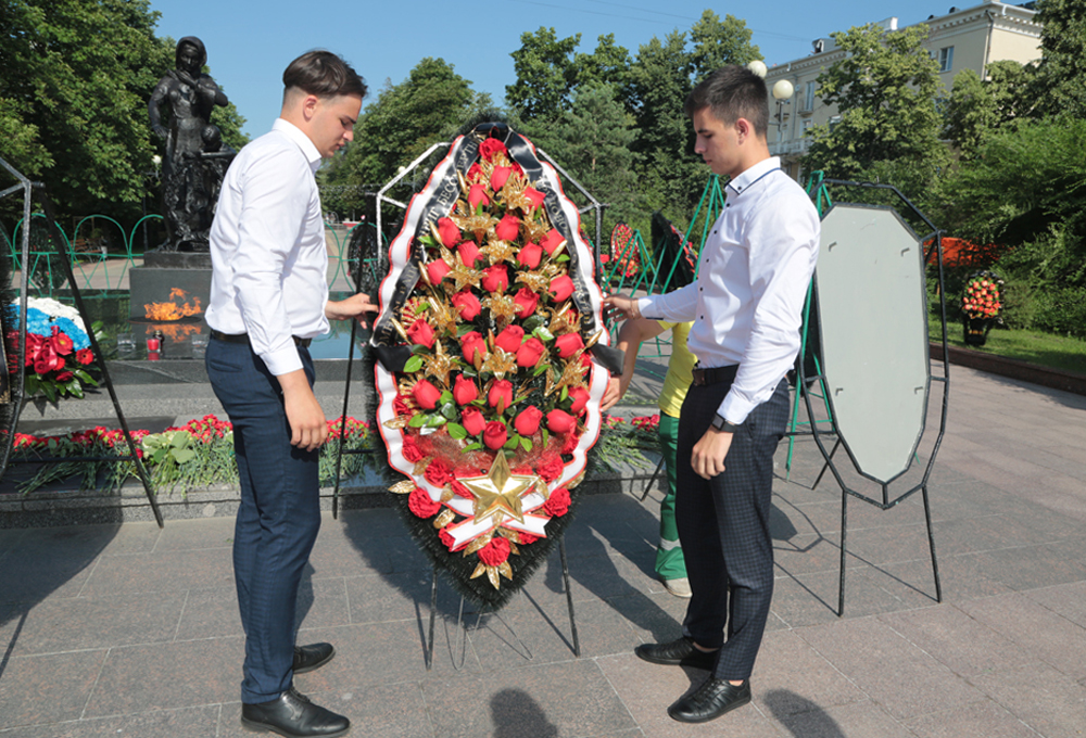 Представители ректората, профессорско-преподавательского состава, студенческого сообщества и профсоюзного комитета вуза возложили цветы к мемориальному комплексу «Вечный огонь» в знак уважения к подвигу советских людей. Память защитников Отечества почтили минутой молчания.