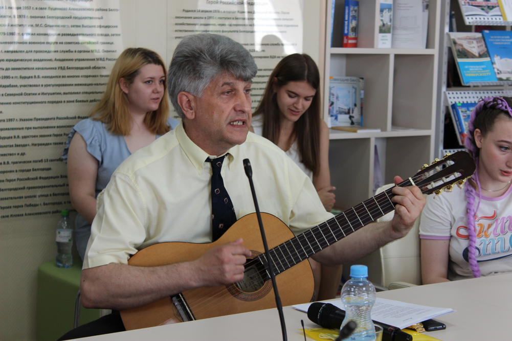Память павших в годы самой кровопролитной из всех войн почтили минутой молчания. В завершение мероприятия Александр Авраменко прочёл стихотворение собственного сочинения, а участники встречи исполнили патриотическую песню «Журавли» под аккомпанемент на гитаре в исполнении председателя Профсоюзной организации НИУ «БелГУ» Валерия Тимофеева.
