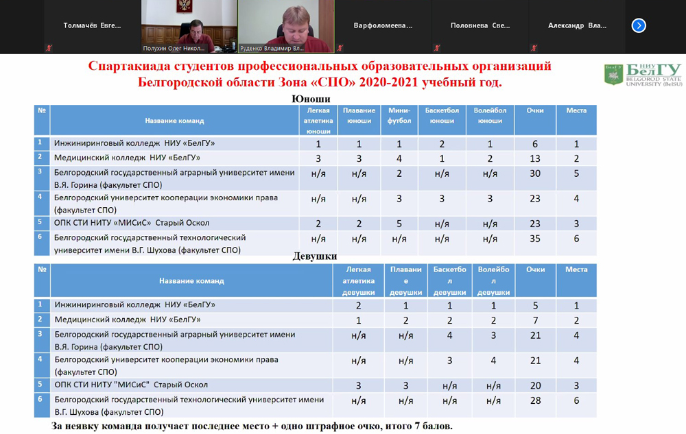 В заседании совета, прошедшем в формате видеоконференцсвязи под председательством ректора НИУ «БелГУ», профессора Олега Полухина, приняли участие представители ректората, руководители структурных подразделений, преподаватели и тренеры.
