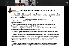 Об итогах и перспективах внедрения комплекса ГТО в НИУ «БелГУ» в 2020-2021 учебном году доложил директор Центра тестирования ВФСК «ГТО» Александр Воронков. Он представил новый проект «Тренируйся – это просто», ориентированный на элективные дисциплины ГТО. Его цель заключается в повышении физической подготовки студентов. Речь также шла о соревнованиях и фестивалях в рамках всероссийского комплекса ГТО, призёрами которых стали студенты и преподаватели НИУ «БелГУ». Александр Воронков отметил, что команда Белгородской области, в состав которой вошли шесть представителей университета, заняла первое место на играх ГТО в Кисловодске. При этом он выделил наиболее активно вовлечённые в движение ГТО институты, в том числе юридический, педагогический и институт общественных наук и массовых коммуникаций, а также колледжи вуза. Однако, по словам докладчика, общий процент участников мог быть гораздо выше, как и процент значкистов.