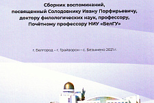 Сборник воспоминаний, приуроченный к 85-летию профессора педагогического института Белгородского госуниверситета Ивану Порфирьевичу Солодовнику, подготовлен и издан в рамках совместного проекта НИУ «БелГУ» и администрации Грайворонского городского округа. В книге рассказывается о жизни и работе профессора. В ней звучат голоса учеников Ивана Порфирьевича, которые отмечают гуманизм и добросердечность учителя в переплетении с высокими профессиональными качествами. Вот что вспоминает о нём одна из его учениц – Инна Акиншина: