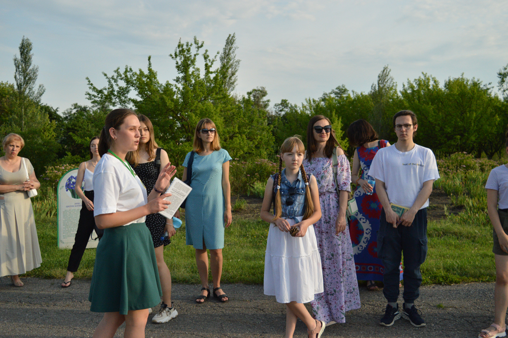 Проводившая экскурсию студентка 3 курса биологического факультета НИУ «БелГУ» Анна Выродова рассказала об основных маршрутных точках – каменистой горке, амфитеатре, лесном участке, пруде и других.