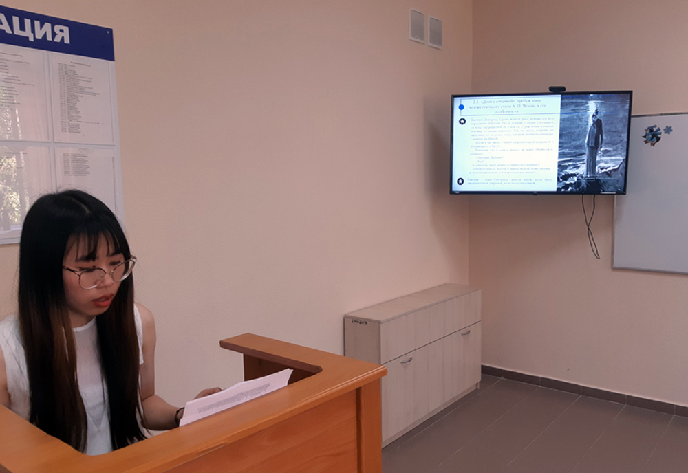 При подготовке выпускных квалификационных работ обучающиеся выбрали разнообразную тематику, показав высокий уровень владения русским языком. Среди тем – «концепт Россия», «урбанонимы и эргонимы г. Белгорода», «комплимент как акт этикетной коммуникации», «язык рассказов А.П. Чехова». В рамках защиты состоялось обсуждение языковых особенностей русского и китайского языков.
