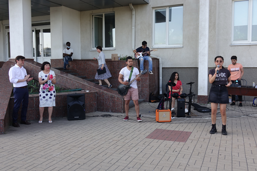 Участники конкурса «Лучший иностранный студент НИУ «БелГУ» 2021» приготовили для всех присутствующих музыкальные подарки. Латиноамериканская группа «Telefunken-band» под руководством участника конкурса из Эквадора Геррейра Перез Сауля Сантьяго и победительница конкурса Евгения Григорьянц исполнили несколько музыкальных композиций.