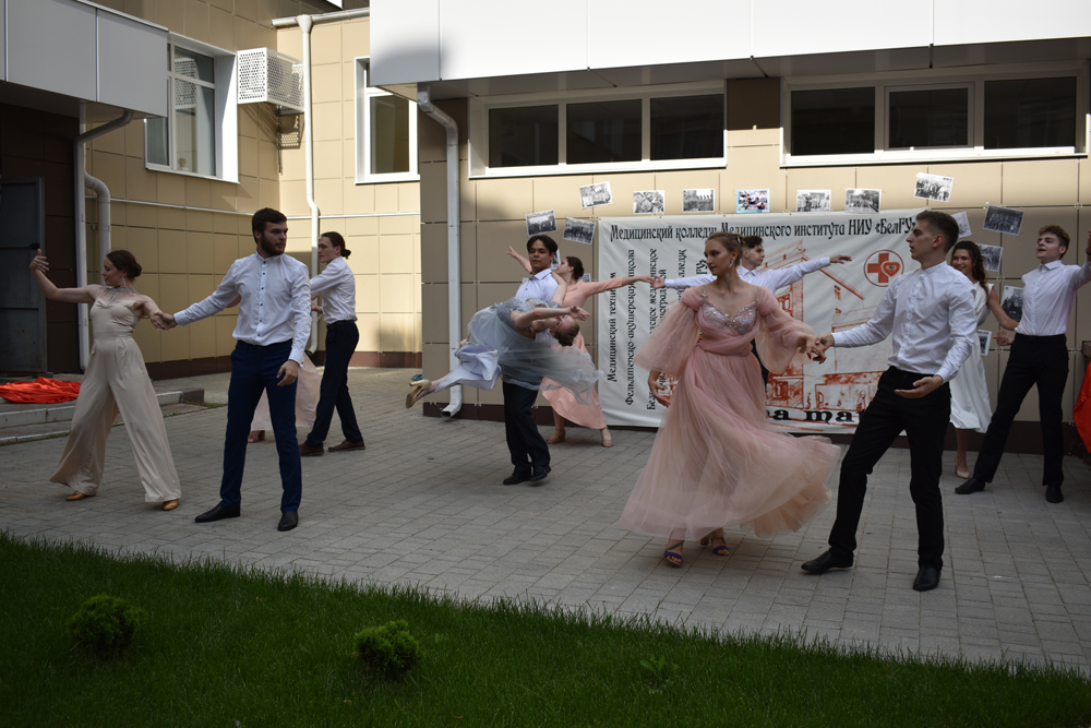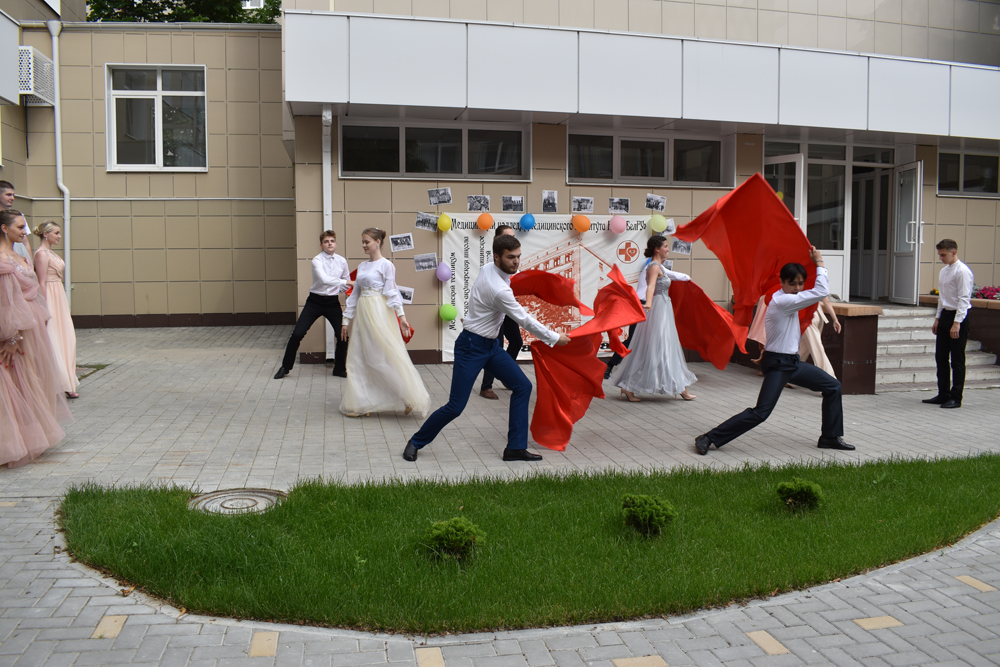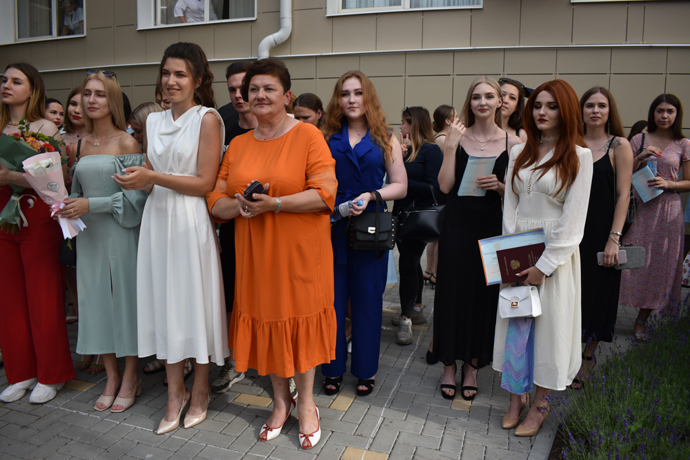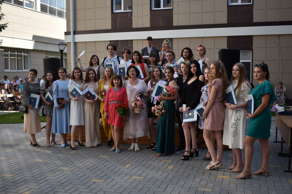 В этом году в связи со сложной эпидемиологической обстановкой торжественные мероприятия, посвящённые выпуску специалистов среднего медицинского персонала, были организованы во дворе корпуса медицинского колледжа.