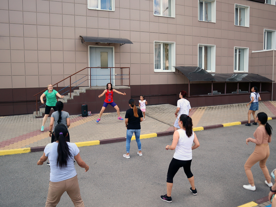 Перед торжественной церемонией на территории студенческого городка для выпускников подготовительного факультета и всех студентов, проживающих в общежитиях, состоялся мастер-класс по зумбе. Его провела лицензированный инструктор танцевальной программы Оксана Дроздова.