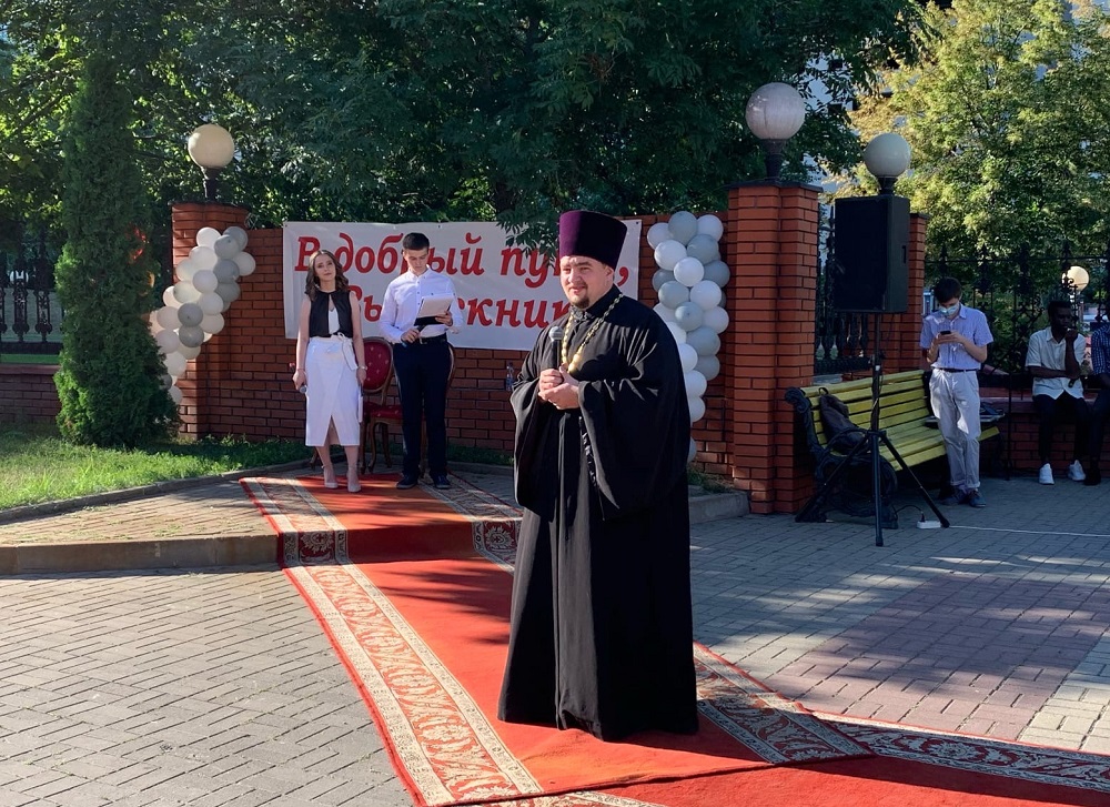 С напутственным словом к выпускникам обратился председатель отдела по образованию и катехизации Белгородской митрополии протоиерей Иоанн Потапов. Он вручил Благодарности Митрополита Белгородского и Старооскольского Иоанна Диане Апатенко, Алевтине Гуцулюк, Вадиму Деркачёву, Арсению Клюйко, Марине Лаврук, Надежде Черепаниной.