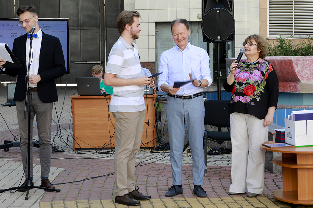 Дипломы молодым специалистам вручили руководитель факультета Светлана Ушакова, заведующий кафедрой журналистики профессор Андрей Полонский и заведующий кафедрой коммуникативистики, рекламы и связей с общественностью, профессор Евгений Кожемякин.