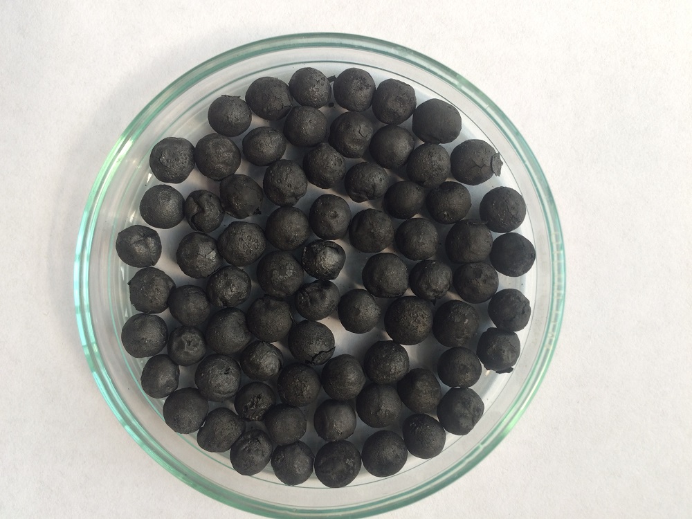 В результате процесса активации с участием растворимых солей угольной кислоты, высушивания и карбонизации ученым удалось получить сферические гранулы сорбента со средним диаметром в 5 мм и высокой пористой структурой внешней поверхности. Сорбент отличается от используемых аналогов высокой удельной поверхностью и суммарным объемом пор примерно в 3 раза больше чем у сорбента, получаемого без применения активатора.