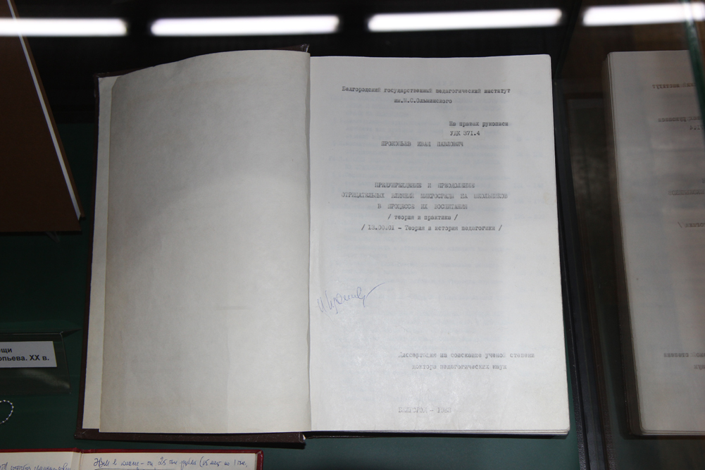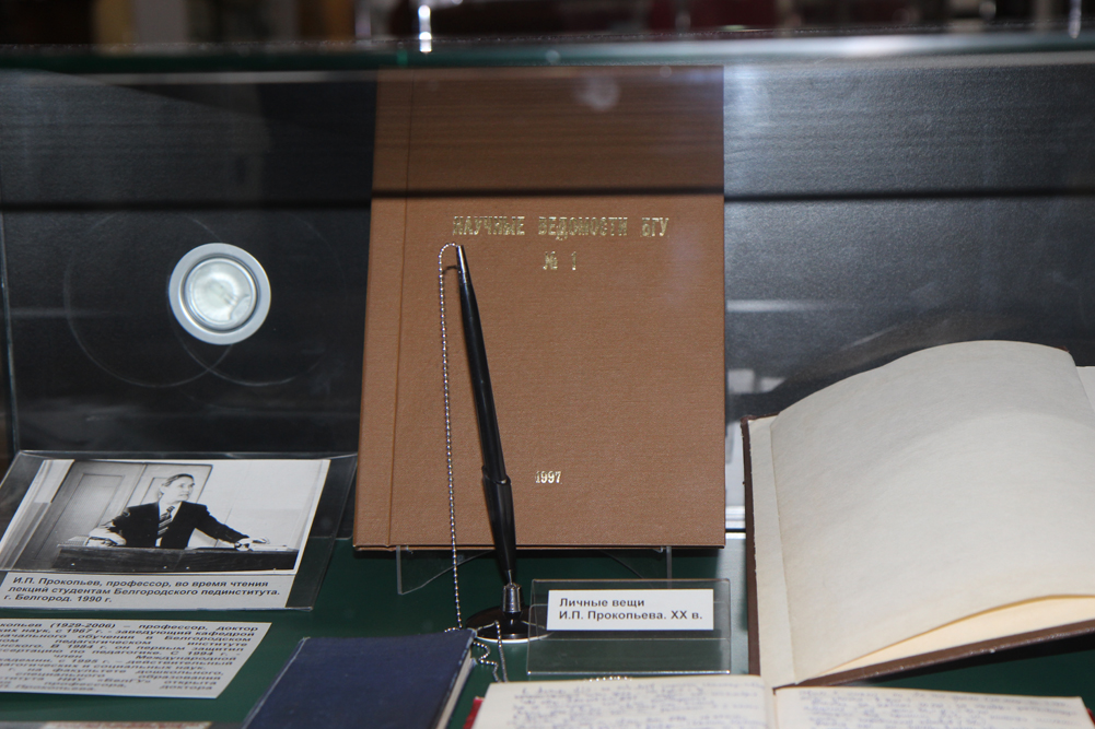 Событие основано на традиции именных и тематических аудиторий НИУ «БелГУ». Автор выставки, научный сотрудник отдела учёта и хранения фондов Белгородского государственного историко-краеведческого музея Виктория Залозная сообщила, что новая экспозиция создана совместными усилиями музея и НИУ «БелГУ».
