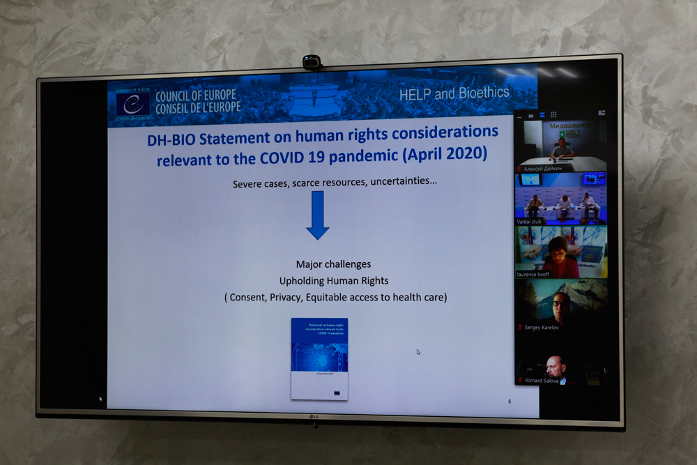В обсуждении темы приняли участие судья Европейского суда по правам человека от Российской Федерации Дмитрий Дедов, руководитель отдела по биоэтике Директората прав человека и верховенства права Совета Европы Лоранс Львофф, советник Уполномоченного по правам человека в Российской Федерации Татьяна Рейхтман, профессор российской и европейской политики в Кентском университете в Кентербери Ричард Саква и другие.