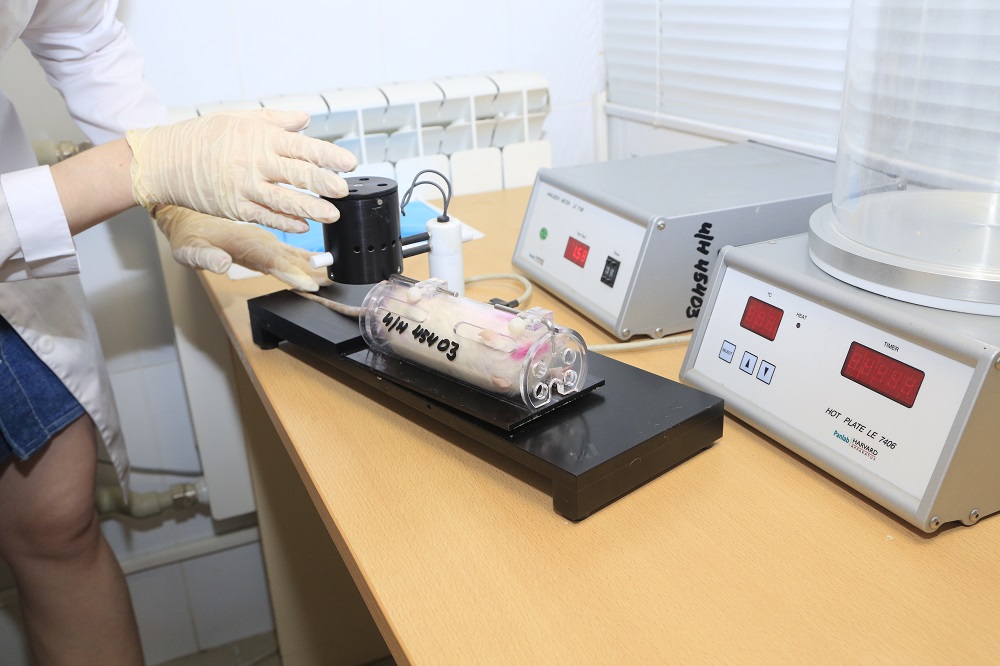Экспериментальные исследования проведены на белых лабораторных крысах-самцах линии Wistar с соблюдением всех этических норм. Лабораторные животные содержатся в собственном виварии НИИ Фармакологии живых систем НИУ «БелГУ», соответствующем международным стандартам GLP. В настоящее время научный коллектив готовит новый препарат к клиническим испытаниям.