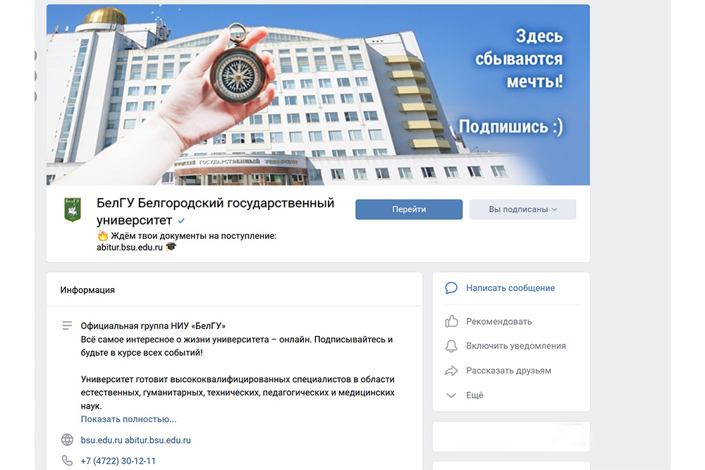 Для справки: Показатель эффективности работы вуза со СМИ учитывает количество публикаций о вузе и его сотрудниках в региональных, федеральных и интернет-СМИ, аудиторию этих источников, количество вышедших сюжетов на региональных и федеральных телеканалах, а также количество эксклюзивных новостей о вузе или его проектах, размещенных на ресурсах Минобрнауки России. Показатель эффективности работы вуза с социальными сетями учитывает наличие у вуза аккаунтов и работу в восьми социальных сетях — ВКонтакте, Instagram, Telegram, Facebook, YouTube, TikTok, Одноклассники, Twitter (во всех этих соцсетях у НИУ «БелГУ» имеются аккаунты), а также траффик, приведенный на сайт вуза из социальных сетей. Наибольший удельный вес имеют социальные сети ВКонтакте, Instagram и Telegram.