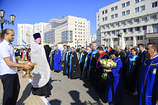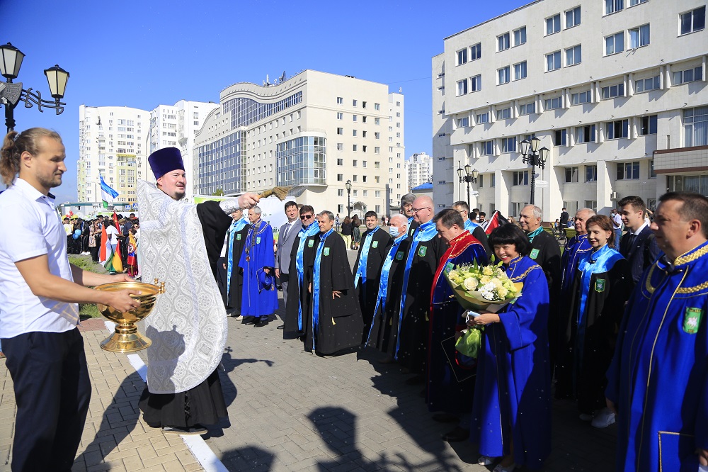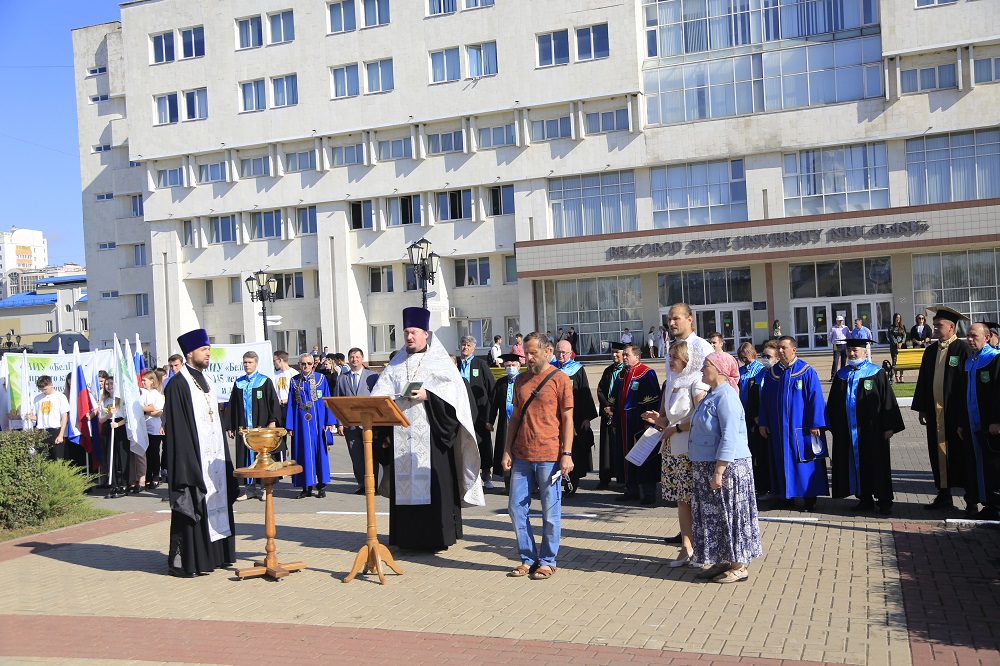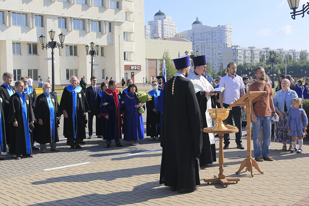 Прошедший на площадке перед университетским храмом Архангела Гавриила молебен предварял праздничные торжественные мероприятия, посвящённые началу нового учебного года. В богослужении, которое совершил настоятель университетского храма отец Юлиан (Гоголюк) приняли участие ректор вуза, профессор Олег Полухин, представители ректората НИУ «БелГУ», руководители институтов и факультетов, студенты, сотрудники и преподаватели.