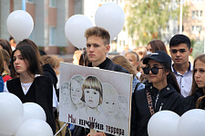 Память жертв террористических актов почтили минутой молчания. Участники митинга по традиции отпустили в небо белые шары, символизирующие души погибших в сентябре 2004-го детей Беслана. В завершение мероприятия солистка арт-студии «Вереск» София Ефимова исполнила музыкальную композицию «Миру-мир!».