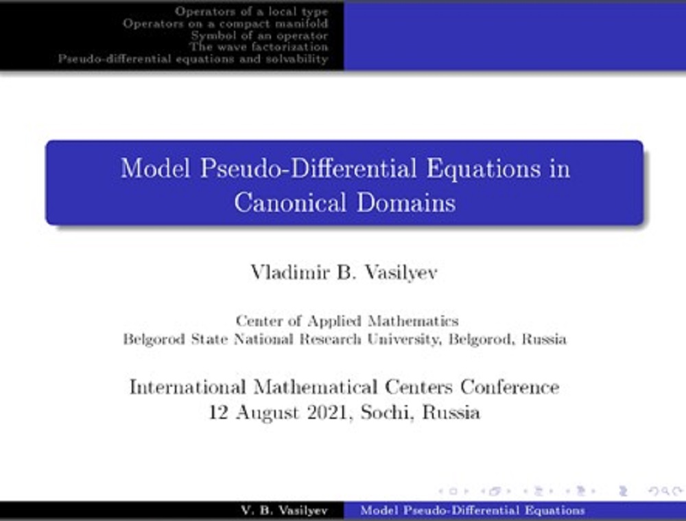 В рамках секции «Теория операторов и гармонический анализ» директор Центра прикладной математики «НИУ БелГУ», профессор кафедры прикладной математики и компьютерного моделирования Владимир Васильев сделал доклад на тему «Модельные псевдодифференциальные уравнения в канонических областях». Ещё один доклад в этой секции на тему «Краевая задача с нормальной производной для эллиптического уравнения на плоскости» сделал ведущий научный сотрудник Центра прикладной математики «НИУ БелГУ», заслуженный деятель науки РФ, профессор Александр Солдатов.